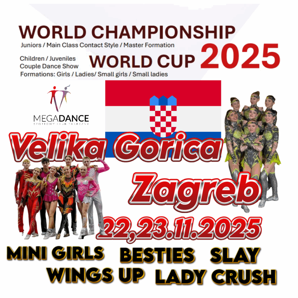 WYJAZD NA ZAWODY DO CHORWACJI – VELIKA GORICA (ZAGRZEB) 22-23 listopada 2025 Sportowy Klub Taneczny Mega Dance zaprasza na wyjazd na międzynarodowe zawody World Cup Rock’n’Roll do Velika Gorica koło Zagrzebia w Chorwacji! 📅 TERMINY ZAWODÓW SOBOTA – 22 listopada 2025 World Cup Rock’n’Roll – Main Class, Juveniles, Juniors🔗 Szczegóły: https://wrrc.dance/competitions/calendar/calendar-details/?id=3455 NIEDZIELA – 23 listopada 2025 World Cup Rock’n’Roll – Formation Small & Large, Girls, Ladies🔗 Szczegóły: https://wrrc.dance/competitions/calendar/calendar-details/?id=3456 📍 MIEJSCE ZAWODÓW Sport hall of Srednja Strukovna škola Velika GoricaUl. kralja Stjepana Tomaševića 2110410 Velika Gorica, Chorwacja 🚌 WYJAZD Data i godzina wyjazdu: Piątek, 21 listopada 2025, godz. 5:00Miejsce zbiórki: Parking CRS Zielona GóraŚrodek transportu: Autokar Powrót: Poniedziałek, 24 listopada 2025, godz. 6:00-7:00 rano 🏨 NOCLEG HI Hostel ZagrebHrvatski ferijalni i hostelski savezCroatian Youth Hostel AssociationPetrinjska 77, 10 000 Zagreb, HrvatskaOIB: 27442377904 Miejsce parkingu AUTOKARU: Parking dla autokarów przy Zagreb Bus Station (Autobusni kolodvor Zagreb) Avenija Marina Držića 4, 10000 Zagreb, Croatia Ilość noclegów: 2 noce (piątek–sobota, sobota–niedziela)Wyżywienie: Śniadania w cenie noclegu Drodzy rodzice, ponieważ w niedzielę większość grupy nie startuje w zawodach, planujemy wycieczkę po Zagrzebiu. W tej sytuacji potrzebujemy od Was dołączenia zgody w formie karteczki z imieniem i nazwiskiem i podpisem. Prosimy taką zgodę umieścić w kopercie wraz z wpłatą za wyjazd: Wyrażam zgodę, aby moje dziecko uczestniczyło w niedzielnym spacerze po Zagrzebiu pod opieką trenerów. Zgadzam się, aby moje dziecko miało jedną godzinę na samodzielny spacer w bezpiecznym obszarze. Osoby nie posiadający zgodę, pojadą na halę sportową i będą z pozostałą grupą w niedzielę na zawodach. 🏆 NASI ZAWODNICY NA STARCIE SOBOTA – 22 listopada: PARY – MAIN CLASS: FORMACJE – LADIES: NIEDZIELA – 23 listopada: PARY: 👥 SKŁAD WYJAZDU Zawodnicy: 47 osób (10 par + 37 formacje)Trenerzy: 4 osoby (Sasza, Kasia, Bartek, Andrzej) Kierowcy: 2 osoby RAZEM: ~50-55 osób 💰 KOSZTY WYJAZDU SKŁADNIKI KOSZTÓW: KOSZTY RAZEM: 470 zł + 135 euro WYŻYWIENIE WE WŁASNYM ZAKRESIE: ZALECENIE: Zabieramy ze sobą jedzenie/przekąski na kolacje. 🎁 DOFINANSOWANIE Z KLUBU Dofinansowanie na osobę: 60 zł + 5 euroDofinansowanie klubu łącznie: 2820 zł + 235 euro 💳 KOSZTY DO ZAPŁATY Kwota do zapłacenia przez zawodnika: 410 zł + 130 euro TERMIN I SPOSÓB PŁATNOŚCI: 🎉 TRZYMAMY KCIUKI! Życzymy naszym zawodnikom wspaniałych wyników i niezapomnianych emocji sportowych!